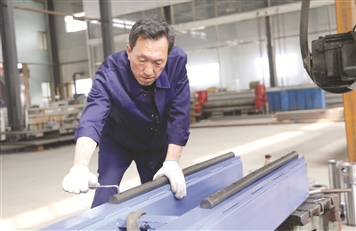 白城福佳科技有限公司是集科研、制造、营销、服务及外贸为一体的科技型公司,是国内规模较大的机电装备制造厂家,主要生产高压、超高压电缆生产设备,并出口至美国、加拿大、巴西等19个国家和地区,连续10年被国家科技部评定为国家高新技术企业。图为工人在对产品进行装配。 本报记者 张殿文摄