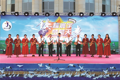 演出在萨克斯合奏《我爱你中国》中拉开帷幕,舒缓多情的萨克斯曲激发着人们的爱国情怀,引起了场内观众的共鸣和热烈的掌声。萨克斯独奏《秋恋》《献给阿妈的歌》等表演,无不展现着萨克斯独有的艺术魅力,给人们留下了醉人的听觉享受;曲悠扬、歌动情的歌曲《大东北我的家乡》,激发着现场观众对家乡浓烈而厚重的爱,观众的热烈掌声此起彼伏,在广场上空久久回荡。