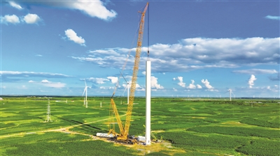 通榆县积极参与国家“千乡万村驭风,千家万户沐光”行动,充分发挥风光资源优势,加快农村地区能源绿色低碳转型。图为通榆县华能十花道风电场抢抓工期,争取项目早建成、早投产,尽早产生效益。 本报记者李晓明摄