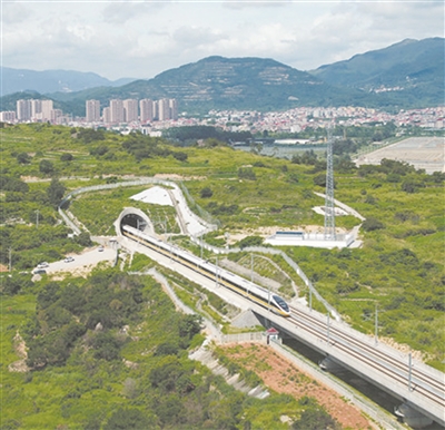 高铁是我国装备制造的一张亮丽名片。前不久,国铁集团在福厦高铁福清至泉州区段组织开展了新型动车组新技术部件在更高运行速度条件下的性能验证试验,试验列车单列最高运行时速达到453公里,标志着CR450新一代动车组研制取得新进展。