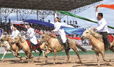 8月9日,演员在2023兴安盟那达慕开幕式上表演。