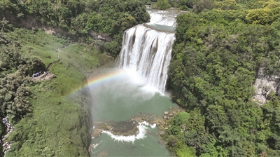 8月16日拍摄的贵州省安顺市黄果树瀑布景区(无人机照片)。