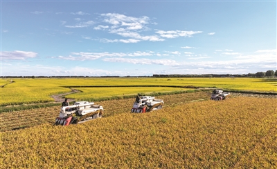 秋收时节,稻浪翻滚,机械轰鸣。8月30日,记者走进洮南市福顺镇草房村看到,在金色稻田里,一台台收割机正来回穿梭,颗粒饱满的稻谷载满了一车又一车,一幅美丽生动的乡村丰收盛景图在田间地头铺开。这也是全东北最早开收的一批水稻。