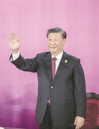 9月23日晚,第十九届亚洲运动会在浙江省杭州市隆重开幕。这是国家主席习近平在主席台上向大家挥手致意。 新华社记者李学仁摄
