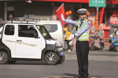 9月30日,河南省焦作市温县一名交警在岗位上执勤。