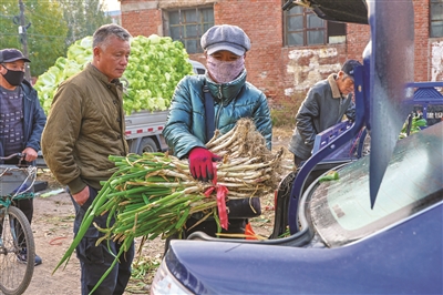 我市今年在城区内设立了6处秋菜疏导点,集中上市时间为9月25日至10月25日。经营的秋菜为土豆、大葱、白菜、萝卜等,吸引了许多市民前来选购。图为市民在购买秋菜。本报记者 李晓明摄