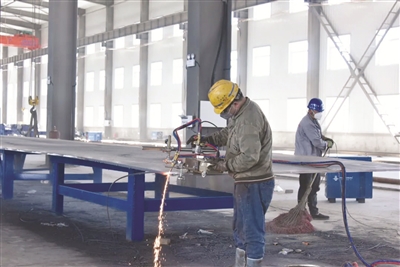 日前,笔者来到吉林林成风电装备制造有限公司,走进新厂房,机声轰鸣、电弧闪烁、火热喧腾,电锯声、焊接声不绝于耳,各工区的工人各司其责,紧密配合,一派火热的生产场面。在卷板机械前,一块巨大的铁板随着机械运转慢慢卷曲,最后合成圆,2名工人密切配合进行压缝焊接。“来,再稍微使点劲,再紧一点点,再压一压”焊接师傅细致地一点点焊接。