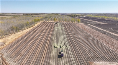 近日,洮南市呼和车力蒙古族乡花生喜获丰收,产值可超亿元。今年全乡花生种植面积3785公顷,种植品种主要为四粒红、白沙系列等高产、稳产品种。图为机械收割花生。 本报记者 李晓明摄