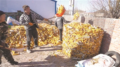 近年来,镇赉县将整治“地趴粮”工作持续摆在突出位置,坚持政府主导、农民主体原则,因地制宜、因户施策,大力推广科学储粮方式,确保农户储粮安全。图为镇赉镇哈拉本召村村民使用简易玉米栈子进行储粮。 镇宣摄