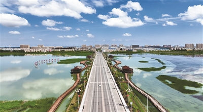 依湖而建的杏花岛沙滩、钢琴半岛、湖心亭、钟楼、荷风细雨、天鹅岛、七彩幸福林荫道、文武大桥、格桑花海、亲水平台、生态慢享道、五和阁南湖“十二景”,将好水好风光有机融入城市,塑造了城园相融、人景交织的优美格局。
