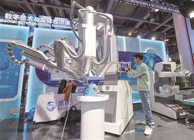 专精特新“小巨人”企业申昊科技的展台上,一台高举双臂的配网带电作业机器人吸引不少采购商上前询问,这款集成多项数智技术的新产品即将进入市场。“去年我们在首届数贸会上谈成了不少销售订单,很期待今年的表现。”企业研发中心总监杨子赫说。