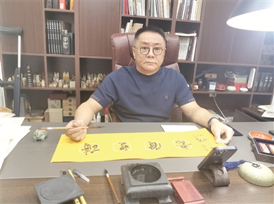 写字为生、寄字为情、与字为盟、授字为业,用在1971年出生的白城市书法家协会副主席、楚天学馆创办人李伟的身上最合宜。
