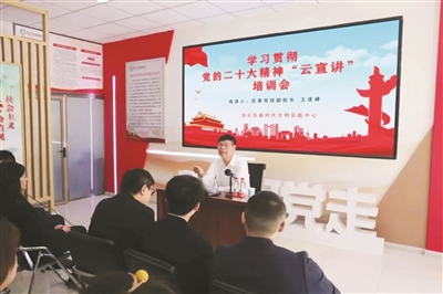 理论宣讲形式不断创新。邀请洮北区委党校教授王连锋,面向洮北区各新时代文明实践所(站)开展党的二十大精神“云宣讲”培训活动,200余人在线参加培训;同时,组织举办了以“党的创新理论我来讲”为主题的党的二十大精神“微宣讲”比赛理论宣讲活动,洮北区思政课教师、理论宣讲志愿者、文明实践专干等不同群体,以三句半、相声等不同形式宣传宣讲了党的二十大精神,推进了党的二十大精神在洮北落地生根。