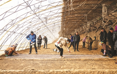 近年来,洮南市洮府街道办事处福胜村依托自然优势大力发展棚膜经济。目前,全村搭建大棚1100多个,以种植叶菜、育苗圆葱、辣椒苗等为主,年收入1000多万元。 本报记者李晓明摄