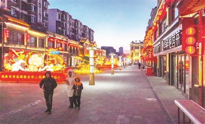 今年,洮南市将“冰汤圆”品牌与冰雪旅游相结合,打造了“冰景+文化”多元素相融合的洮南特色兴隆古街冰雪项目,向市民全方位展示洮南的悠久历史和深厚文化底蕴,进一步增强了群众的历史自信、文化自信。图为兴隆古街一角。