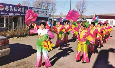 新春将至,年味渐浓。日前,通榆县向海蒙古族乡创业村村民在农家书屋门前扭起秧歌。他们载歌载舞迎接新春的到来。图为扭秧歌场景。 陈宝林 王志鹏摄