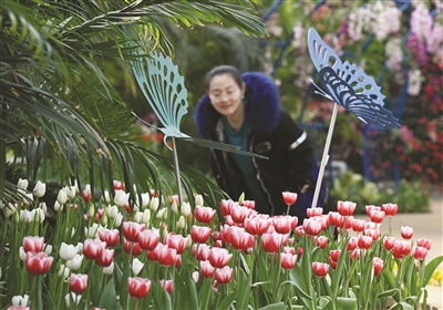 春节临近,河北省石家庄市植物园举办新春花展,展出郁金香、兰花、梅花、杜鹃等百余种花卉,让游客感受到盎然春意和浓浓年味。 新华社发(陈其保摄)
