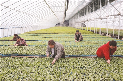 2月19日,在山东省枣庄市峄城区吴林街道后土河村,农民在大棚内管护蔬菜种苗。