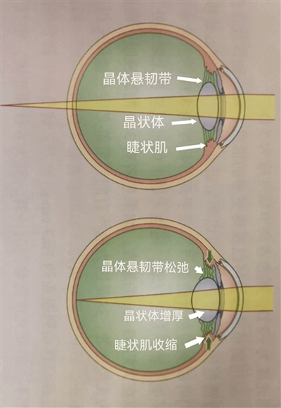 张浩告诉中青报·中青网记者,假性近视是由眼球内的睫状肌痉挛造成的。长时间用眼造成眼睛过度调节,引起睫状肌痉挛,眼球内圆盘状的晶体变厚,看远模糊,看近清楚,这种情况和近视的症状完全一样。