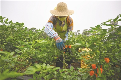 海南省海口市龙华区遵谭镇龙合村曾经经济薄弱,村民增收路子窄。2021年,该村成立村集体公司,采用“党支部+村集体公司+企业+农户”合作模式,因地制宜引进黄灯笼辣椒种植产业。由农户提供土地,村集体公司提供资金和种子,企业负责运营和管理。同时,企业保底收购黄灯笼辣椒,并在种植、管理和采摘等环节带动数十位村民务工增收。目前,遵谭镇正以龙合村为示范点,辐射带动该村及周边乡村种植黄灯笼辣椒400多亩,进一步促进农民增收,助推乡村振兴。