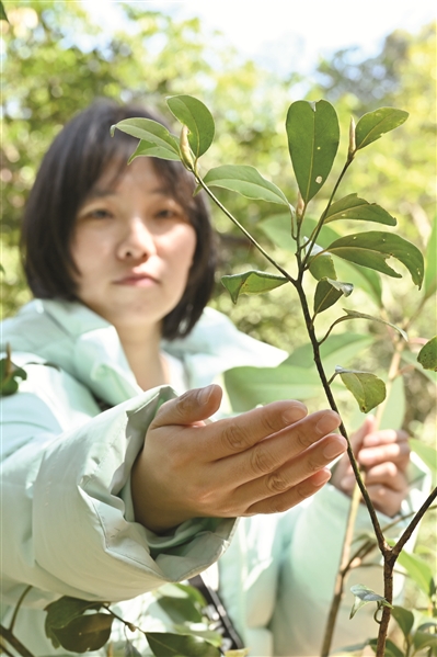 3月3日,福建戴云山国家级自然保护区工作人员黄雅琼在观看金斑喙凤蝶叶状蝶蛹发育情况。