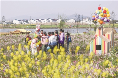 当日,浙江省绍兴市越城区陶堰街道2024年鉴湖湿地油菜花节在鉴湖国家湿地公园东鉴湖畔的民乐原乡启动,吸引了大批游客踏春赏景,感受湿地公园的春日烂漫。油菜花节已成为当地春日旅游的金名片。 新华社记者徐昱摄