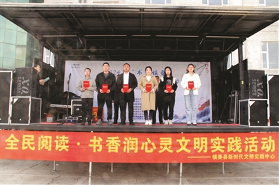 镇赉县以第29个世界读书日为契机,举办了“书香镇赉”阅读季暨图书馆服务宣传周启动仪式。本次活动由镇赉县委宣传部、县新时代文明实践中心、县文广旅局主办,县图书馆承办。图为嘎什根乡政府等获奖单位工作人员领取获奖证书。 陈偲聪摄