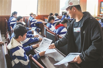 近日,通榆县团结乡司法所开展反邪教警示教育“进乡村”“进校园”活动。活动中,他们结合警示教育宣传“六进活动”组织志愿者开展宣传,并深入挖掘警示教育题材,贴近群众、常抓常新,形成全社会共同参与的良好氛围。图为志愿者深入学校开展宣传。 王志鹏 佘凤东摄