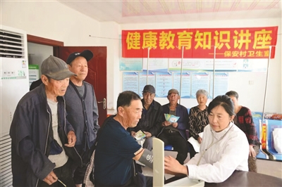 自吉林省启动实施“一村一名大学生村医计划”以来,白城医学高等专科学校采取线上理论教学、线下技能培训、课间临床见习、专家送技等多项教学,培养了2202名大学生村医。他们将理论知识用于实践诊疗,用扎根基层、服务人民群众的实际行动书写了一幅幅感人的行医画卷。图为通榆县新华镇保安村“村医大学生”为村民测血压。 陈宝林摄