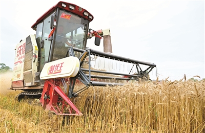 近日,四川省各地的小麦陆续进入收获期,当地农民紧抓农时,开展夏收作业,确保夏粮归仓。 新华社发(潘建勇摄)