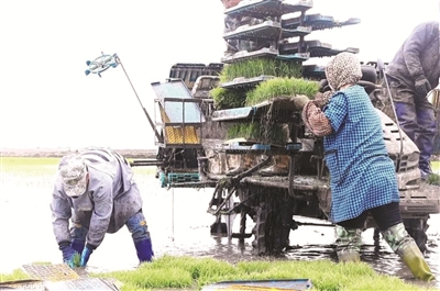 本报讯(洮融宣文/摄)连日来,随着气温的回升,洮南市水稻移栽工作有序进行,农户们抢抓农时,借助现代化的农业机械设备,将秧苗移栽至水田,为今年的水稻丰收打下坚实基础。