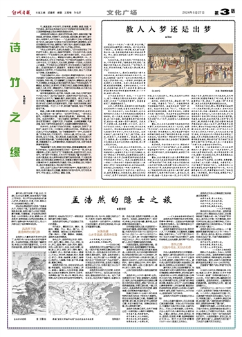 在那悠远的《诗经》中,就有对竹的吟唱。《国风·淇奥》写道:“瞻彼淇奥,绿竹猗猗。有匪君子,如切如磋,如琢如磨。瑟兮僩兮,赫兮咺兮。有匪君子,终不可谖兮……”这是先秦时代卫地人民赞颂美男子的诗,说的是君子之美在于后天的积学修养、磨砺精进。该诗采用借物起兴的手法,每章均以“绿竹”起兴,借绿竹的挺拔、青翠、浓密来赞颂君子的高风亮节,开创了以竹喻人的先河。