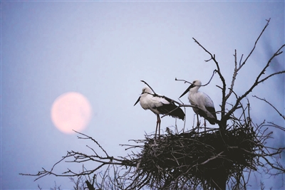 向海国家级自然保护区是东方白鹳迁徙的重要繁殖和停歇地。去年这个保护区通过人工招引的方式,为东方白鹳建造人工鸟巢,繁殖了四十余只幼雏,使东方白鹳在保护区安家落户的数量逐渐增加。今年,已监测到一百多只东方白鹳到此安家并开始繁育后代。 李连山 陈宝林摄