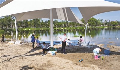 入夏以来,春华园内沙滩区备受孩子及家长的欢迎,他们在这里玩沙、玩水、嬉戏……在优美环境的衬托下,孩子们轻松惬意,流连忘返。 本报记者李晓明摄