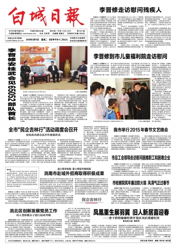 本报讯(记者李政孚)为迎接春节的到来,2月12日,由市委、市政府主办,市委宣传部、市文广新局和白城广播电视台承办的白城市2015年春节文艺晚会举行。市委常委、宣传部长季委,市委常委、纪委书记王云桥,市委常委、组织部长李永杰,市人大常委会副主任许广山,市政府副市长张国华,市政协副主席马靖然、翟喜林等领导与各界群众一起观看了晚会。