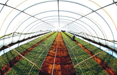 图④大安市舍力镇烟叶育苗大棚内烟农正在忙碌。